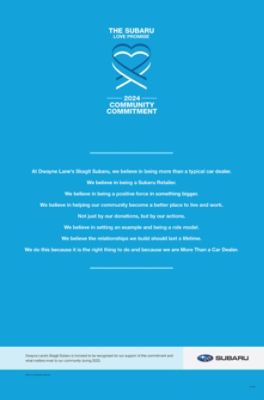 Here at Dwayne Lane's Skagit Subaru, we love our community as much as we love our vehicles and are committed to making a positive impact on the lives of all of our customers and neighbors.