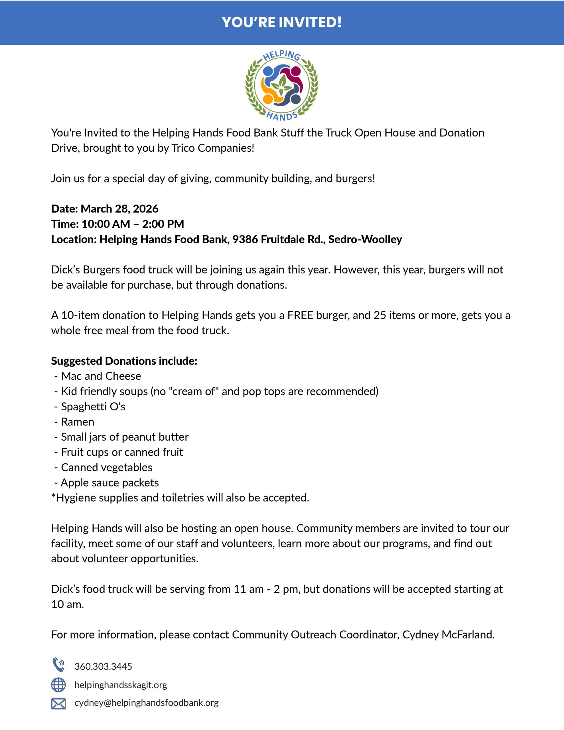 Helping Hands Food Bank – Donation Drive and Open House