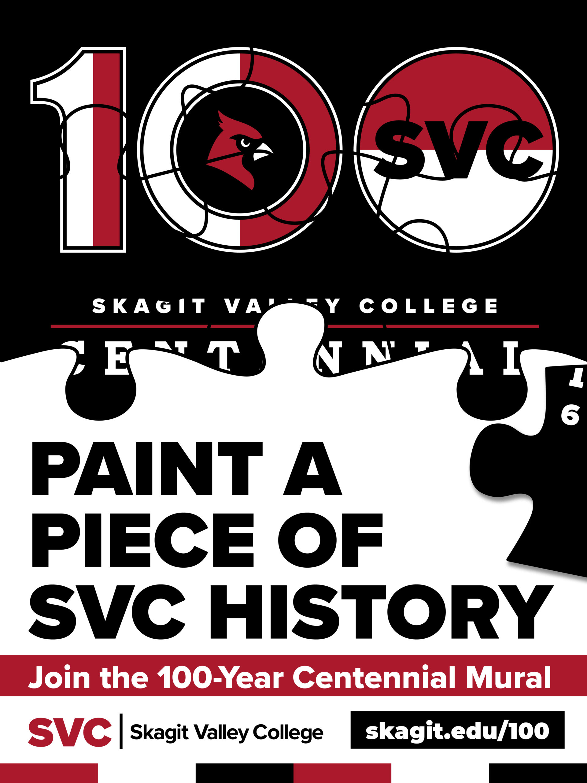 “This is a unique opportunity for our students and community members to leave their mark on Skagit Valley College’s history,” said representatives from the SVC Centennial Committee. “Each piece will contribute to a larger story about who we are as a college and the communities we serve.”
